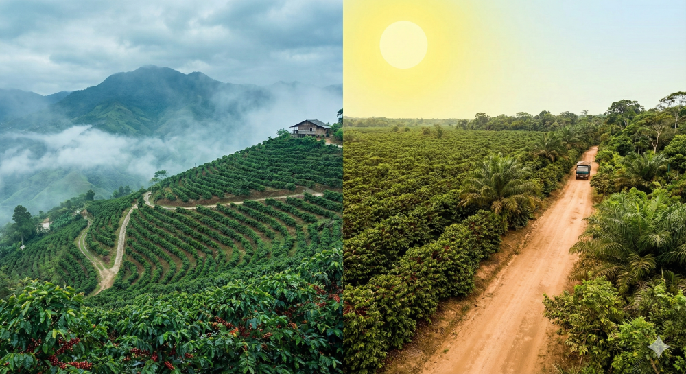 Robusta (Coffea canephora) je odolnejšia rastlina, ktorá rastie v nižších polohách. Mnohí ju považujú za podradnú, ale to je mýtus. Kvalitná Robusta je nenahraditeľná pre pravé talianske espresso.
