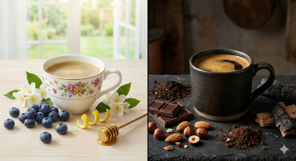 Arabica ponúka komplexné, ovocné a jemne kyslé tóny, zatiaľ čo Robusta je typická horkosťou, zemitou chuťou a dvojnásobnou dávkou kofeínu.